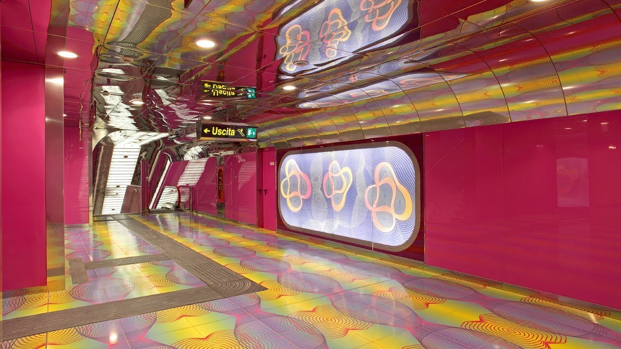 Un breve tragitto in treno ci condurrà alla fermata Università, degli architetti Karim Rashid e Alessandro Mendini, di sicuro una delle più colorate della linea 1. Le pareti che portano alle banchine dei treni sono caratterizzate da forti colori fucsia e lime mentre opere come Synapsis, Ikon, Conversation profile vogliono sottolineare l’importanza della comunicazione in un ponte tra passato e presente, aspetto sottolineato dalla presenza, al secondo livello, delle immagini di Dante Alighieri e la sua musa Beatrice Portinari.