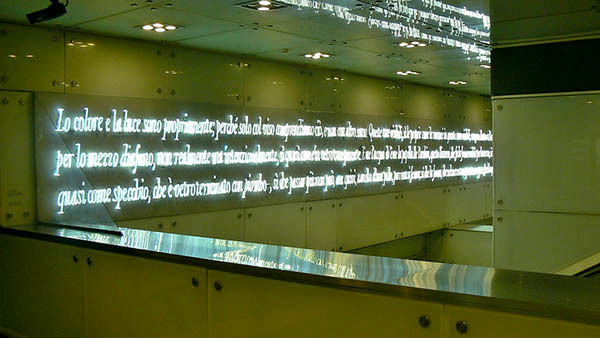 Il nostro tour partirà dalla Stazione Dante. Disegnata da Gae Aulenti, presenta una struttura esterna con due padiglioni realizzati in vetro e acciaio che incorniciano la statua di Dante nell’omonima Piazza. Al suo interno ospita diverse opere d’arte tra cui due tele di Carlo Alfano e un’istallazione dell’artista concettuale Joseph Kosuth: una citazione tratta dal Convivio di Dante riprodotta con tubi al neon. Notevole anche la creazione di Jannis Kounellis sul tema del viaggio con delle strisce di ferro simili a binari fissate ad una parete, sotto le quali sono incastrati un soprabito, un cappello, dei trenini giocattolo e tante paia di scarpe.